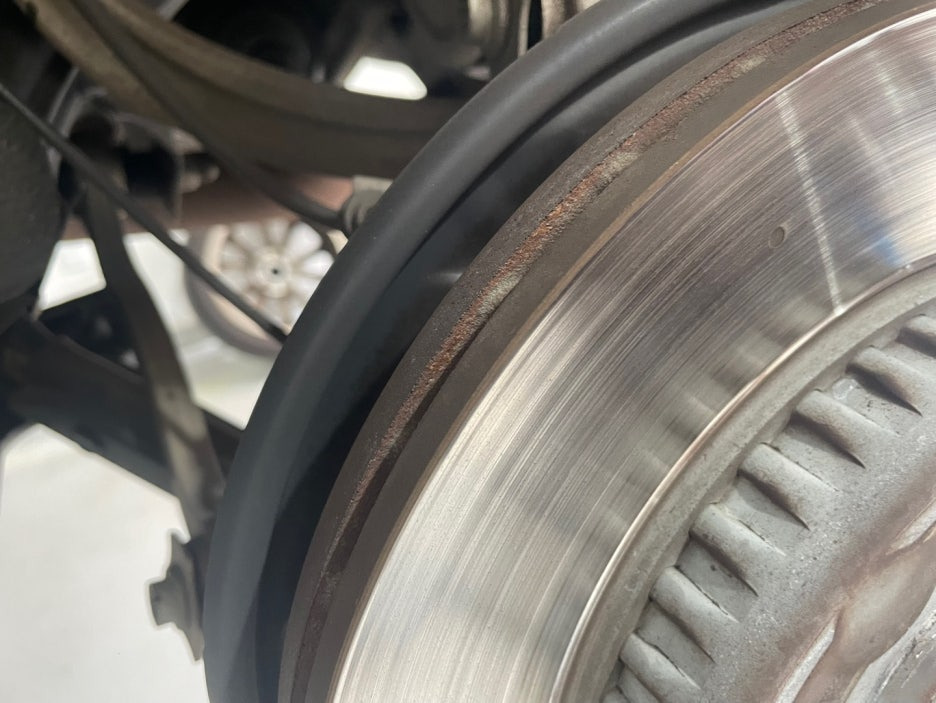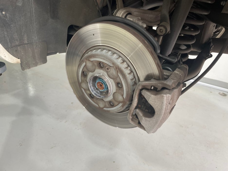 브레이크 패드 교체를 위해 휠을 탈거하고