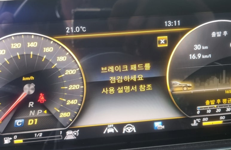점검을 해보니 앞쪽 패드 잔량이 다되서 메세지가 떳네요.