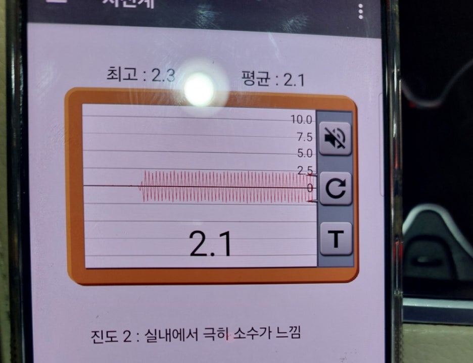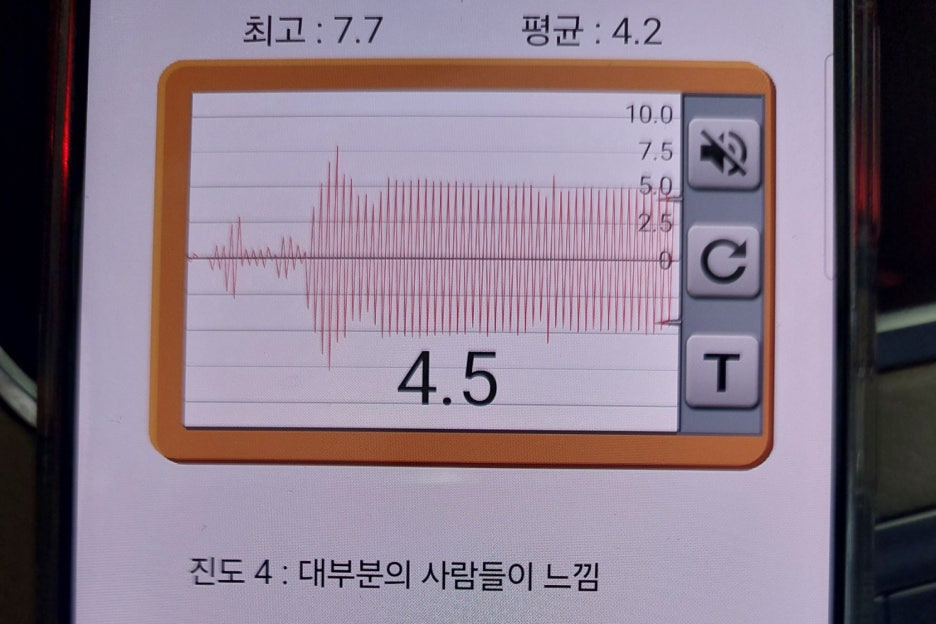 처음 진동계를 찍어보니 4.5까지 수치가 올라왔습니다.