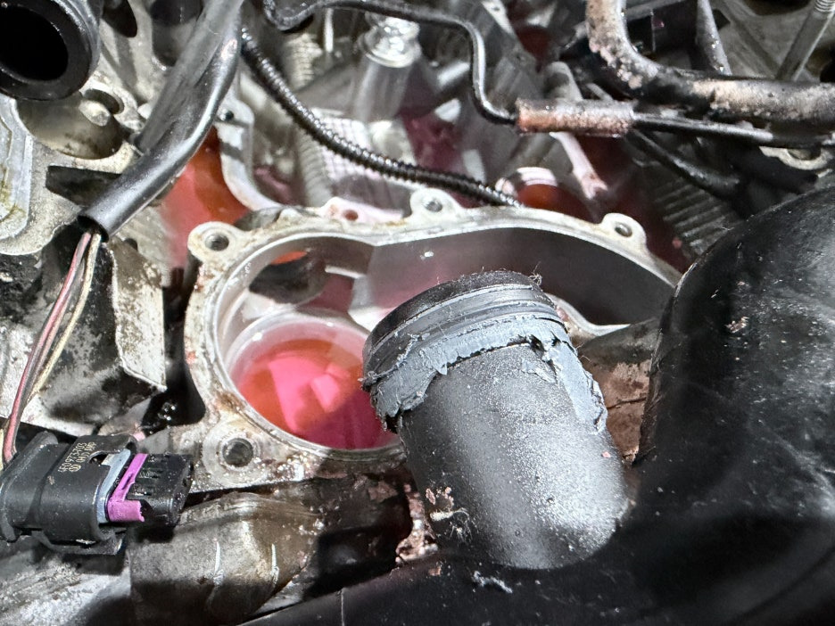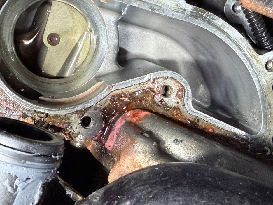 워터펌프에서 냉각수가 재누수된 사례입니다.