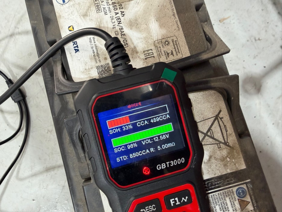 기존 배터리의 상태를 진단기로 체크해 보았습니다.