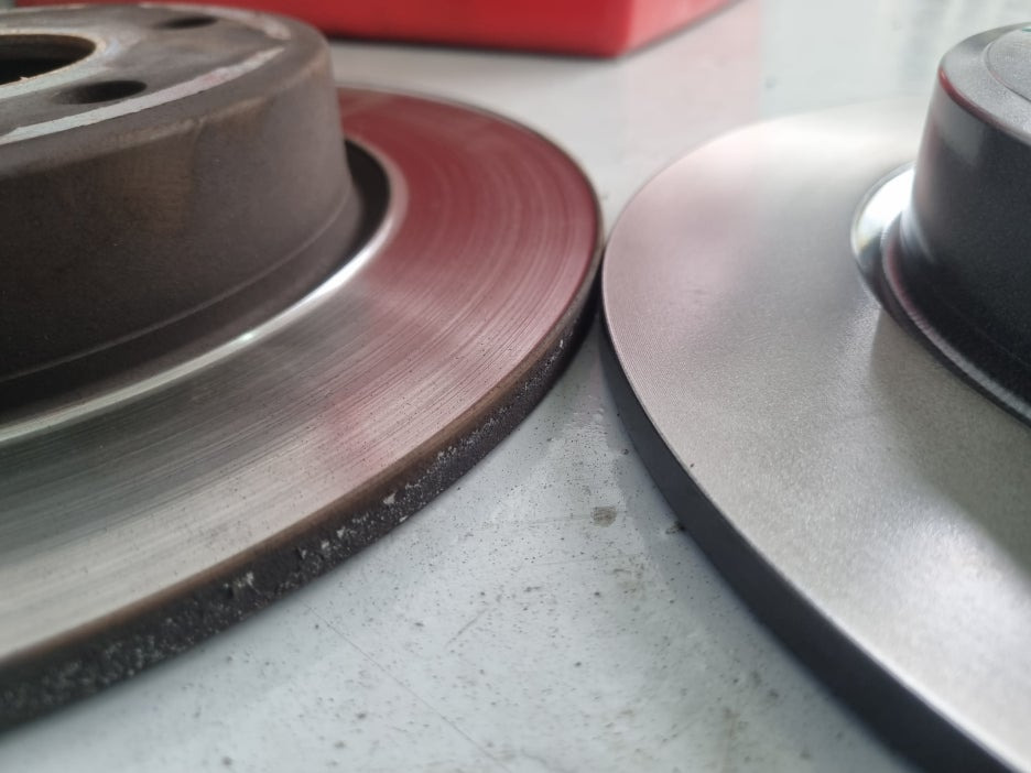벤츠 A200에 장착될 신품 디스크와 탈거한