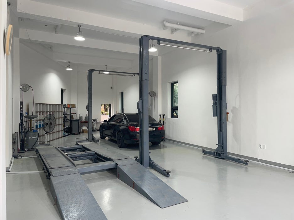 리프트에 차량을 띄워 하부를 꼼꼼히 확인하던 중,