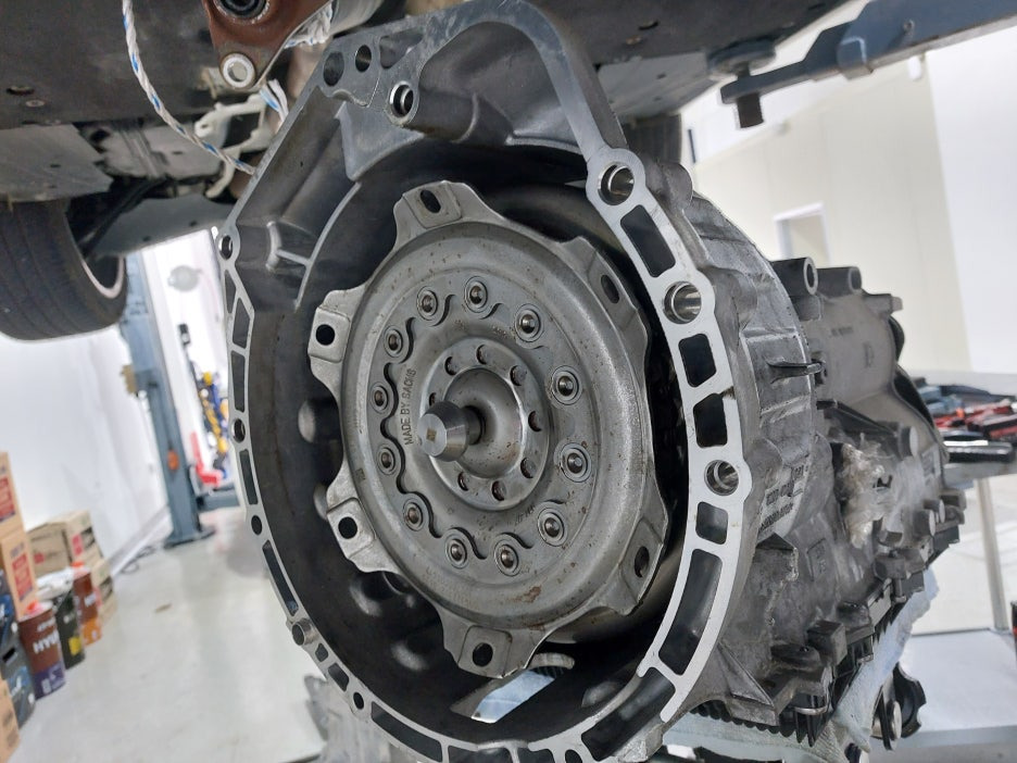 리데나 교환 후, 미션을 다시 엔진에 결합합니다.
