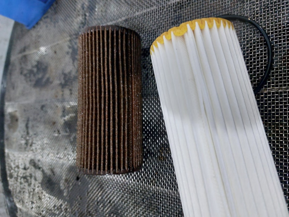 엔진 내부의 불순물을 걸러주느라 검게 변한 기존 필터를