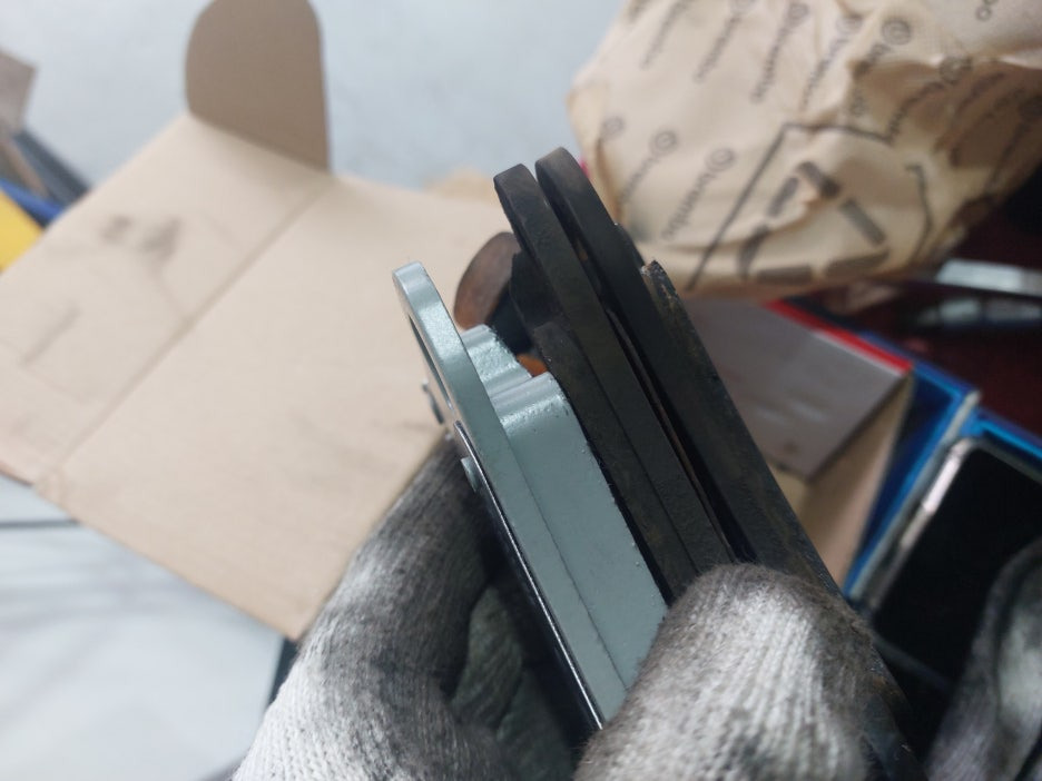 캘리퍼에서 마모된 기존 패드를 모두 탈거합니다.
