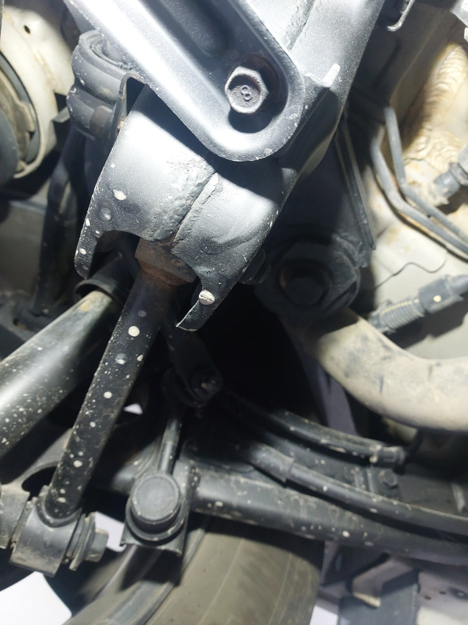 브레이크 캘리퍼 주변까지 검검한 하부와 대비되어 흙먼지가 묻은 모습이 확연히 비교됩니다.