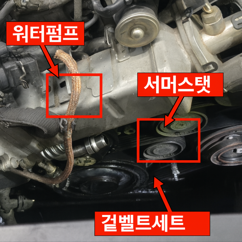 ✔ 교환 항목: 겉벨트세트, 댐퍼풀리, 워터펌프, 서모스탯