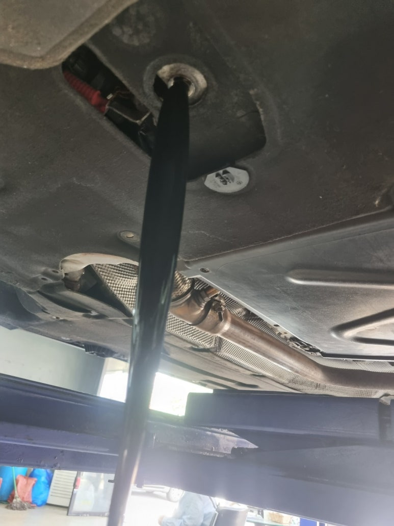 이 차량은 엔진하부에 오일을 빼주라고 언더커버에 뚜껑이 있어요.